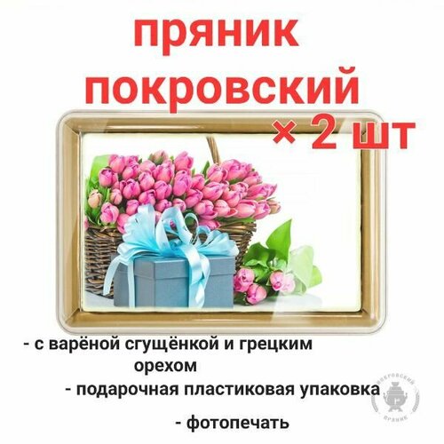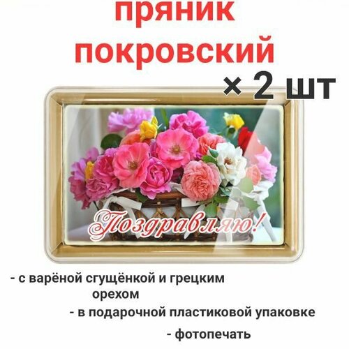 Пряник Покровский подарочный " Поздравляю" с грецким орехом и варёной сгущёнкой (в подарочной пластиковой упаковке) 2 шт * 140гр