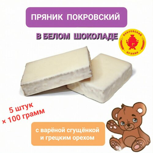 Пряник Покровский с варёной сгущёнкой и грецким орехом в белом шоколаде 5шт*100гр