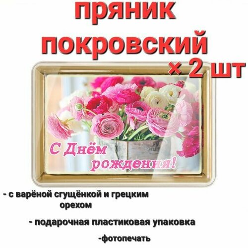Пряник Покровский " С Днём Рождения" с грецким орехом и варёной сгущёнкой (в подарочной пластиковой упаковке) 2шт*140 гр