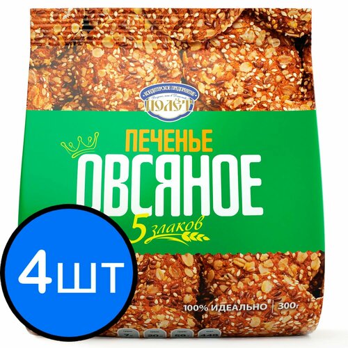 Печенье Овсяное "Пять злаков" полет (пакет), 300г х 4шт