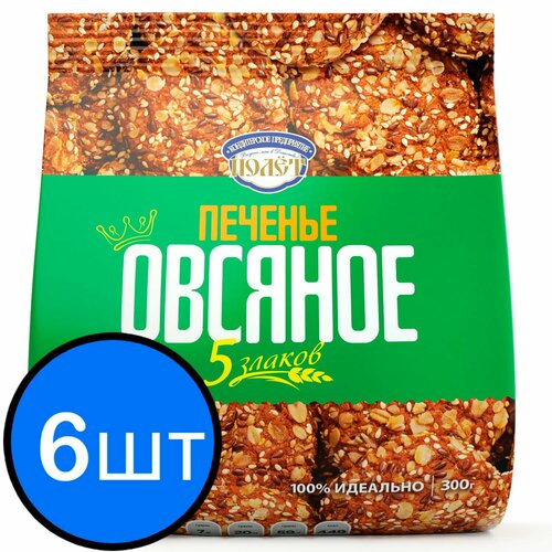 Печенье Овсяное "Пять злаков" полет (пакет), 300г х 6шт