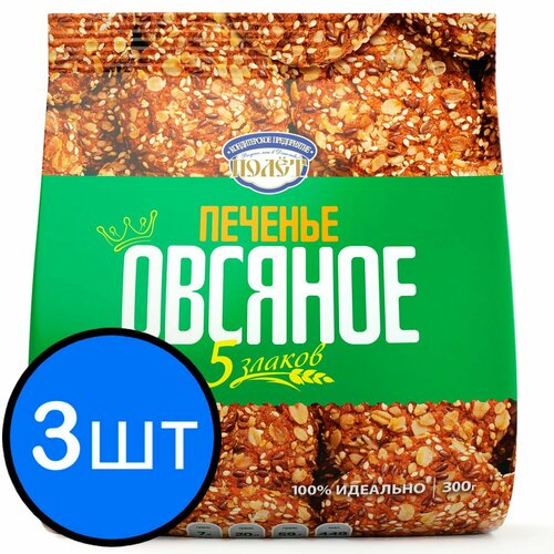Печенье Овсяное "Пять злаков" полет (пакет), 300г х 3шт