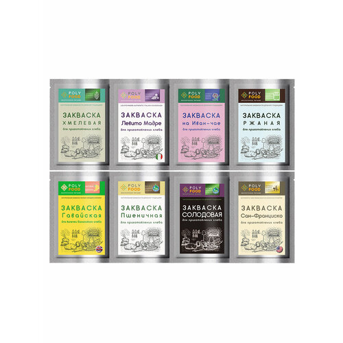 PolyFood Закваска для выпечки хлеба Хмелевая, Левито Мадре, Иван Чай, Ржаная, Гавайская, Пшеничная, Солодовая, Сан-Франциско, набор 8 упаковок