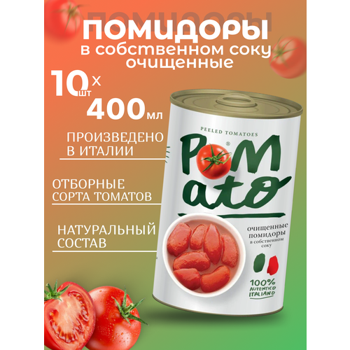 Томаты в собственном соку очищенные целые 10шт*400г POMATO