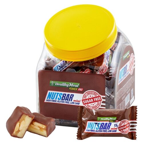 Конфеты без сахара натсбар мини NUTS BAR mini с карамелью и жареным арахисом, в банке,15 г 56 шт