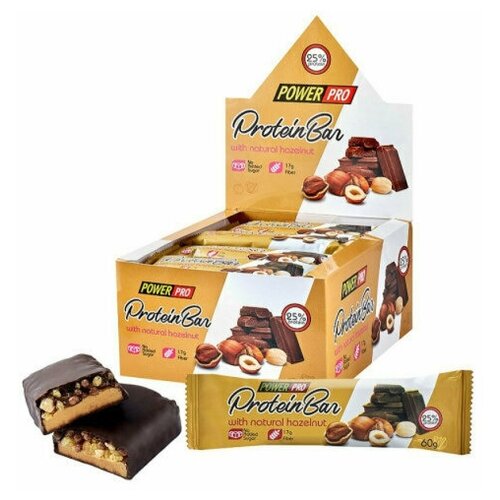Батончики 25% белка без сахара С орехами фундука В шоколаде, 60 Г