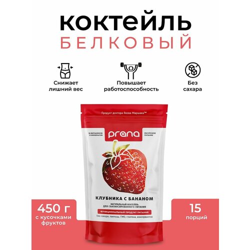 Белковый коктейль для похудения "PRANA food" — Клубника и банан, 300 гр.