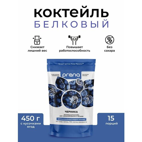 Белковый коктейль для похудения и замены питание "PRANA food" — черника, саше 8 шт по 30 гр.