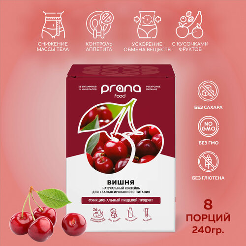 Белковый коктейль для похудения и замены питание "PRANA food" — Вишня, саше 8 шт по 30 гр.