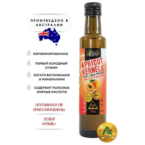 Масло Абрикосовой косточки Австралия Нерафинированное Первый Холодный Отжим Pressed Purity Cold Pressed 250 мл, стекло 2 штуки в комплекте
