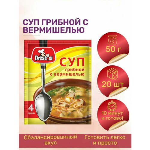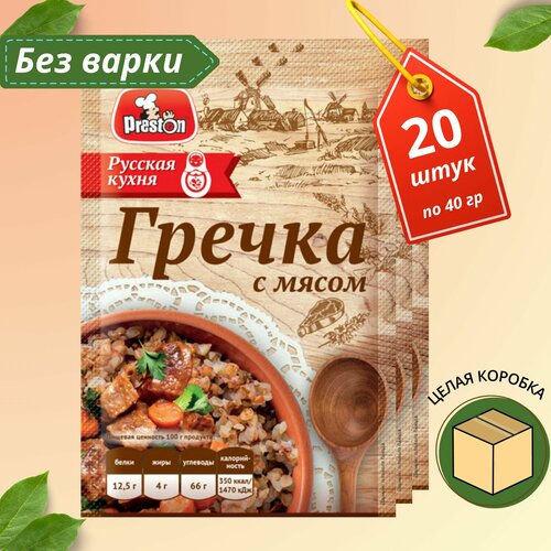 Гречка с мясом Preston быстрого приготовления, без варки, в пакетиках 40 г х 20 штук