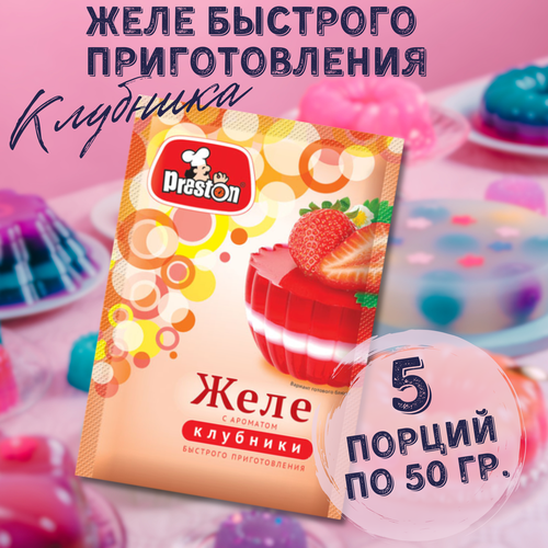 Желе быстрого приготовления Preston со вкусом Клубника, 5 штук.