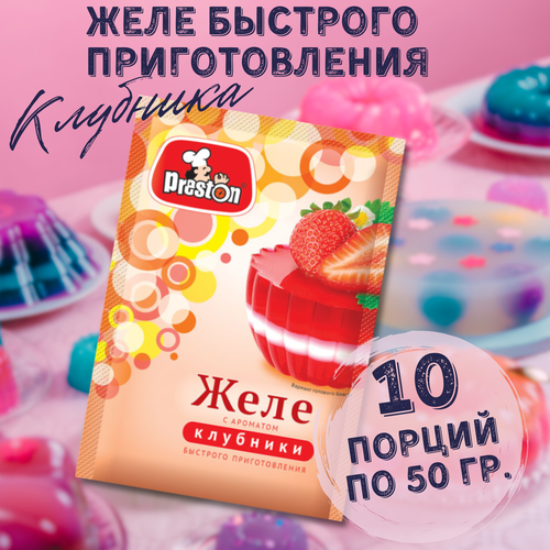 Желе быстрого приготовления Preston со вкусом Клубника, 10 штук