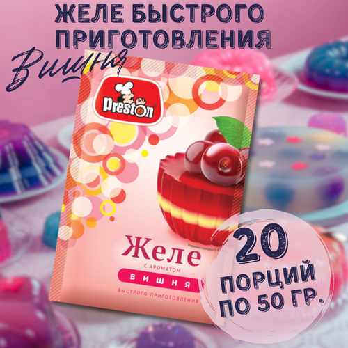 Желе быстрого приготовления Preston со вкусом Вишня, 20 штук.