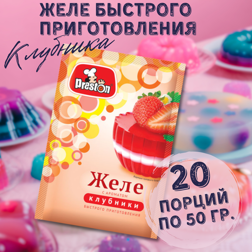 Желе быстрого приготовления Preston со вкусом Клубника, 20 штук