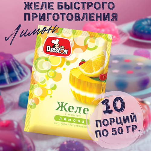 Желе быстрого приготовления Preston со вкусом Лимона, 10 штук.
