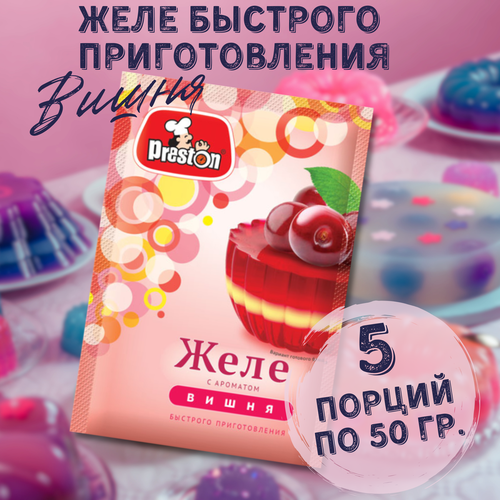 Желе быстрого приготовления Preston со вкусом Вишня, 5 штук.