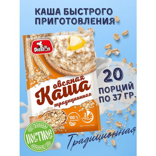 Каша овсяная быстрого приготовления Preston Традиционная, в пакетиках 37 г, 20 шт.