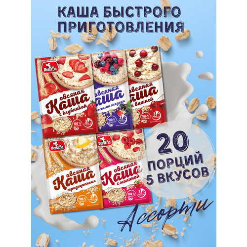 Каша овсяная быстрого приготовления Preston, в пакетиках 37 г, Ассорти 5 вкусов, 20 шт.