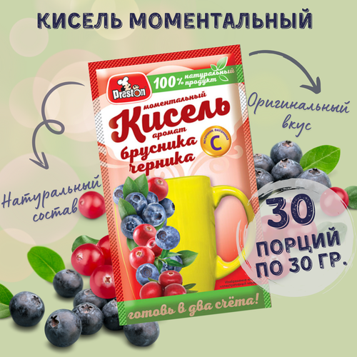 Кисель натуральный быстрого приготовления в пакетиках, аромат Брусника-Черника, 30 г, 30 шт.