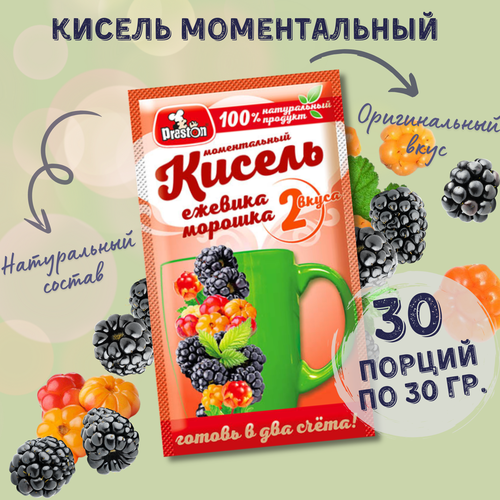 Кисель натуральный быстрого приготовления в пакетиках, аромат Ежевика и Морошка, 30 г, 30 шт.