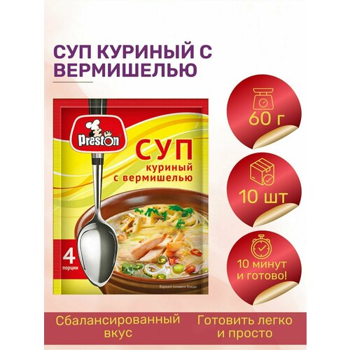 Суп Preston "Куриный с вермишелью", 60г, 10шт