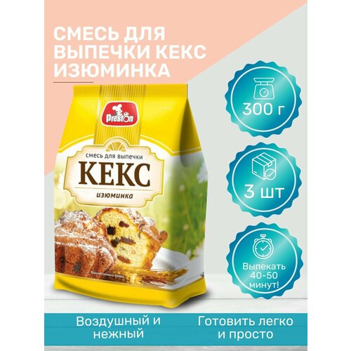 Смесь готовая для выпечки Preston кекс "Изюминка" 3 штуки по 300г