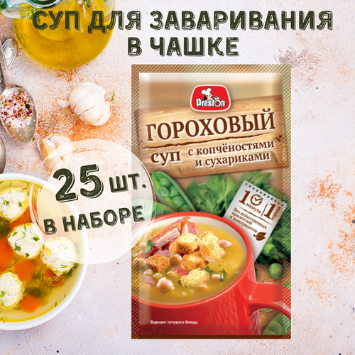 Суп гороховый с копченостями Preston для заваривания в чашке, 16 г х 25 шт.