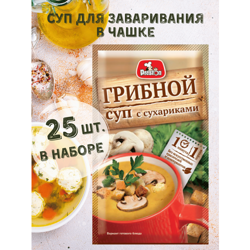 Суп грибной с сухариками Preston для заваривания в чашке, 16 г х 25 шт.