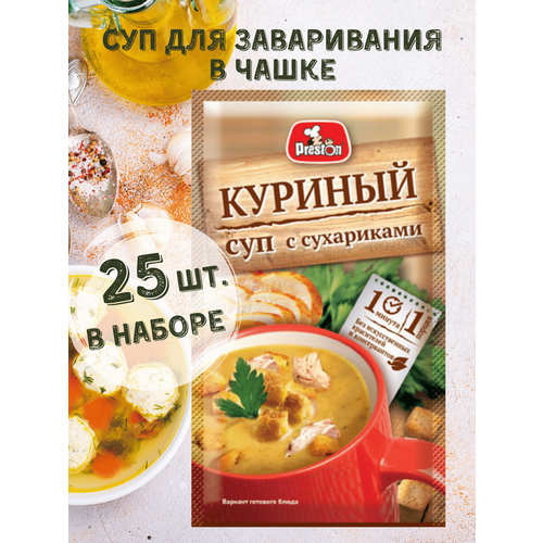Суп куриный с сухариками Preston для заваривания в чашке, 16 г, 25 шт.