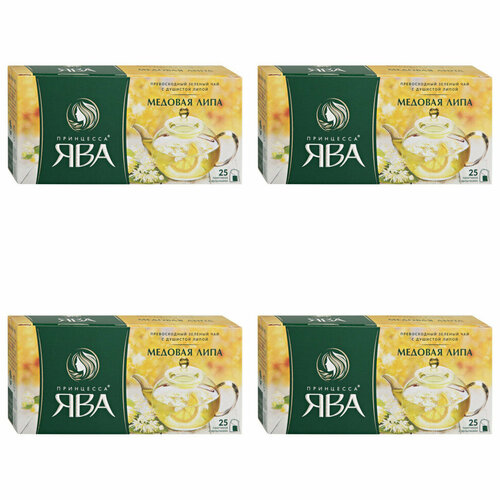 Чай зеленый в пакетиках для чашки Принцесса Ява Медовая липа, 25*1,5 г (комплект 4 шт.) 6014383