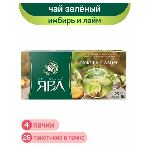 Чай зеленый Принцесса Ява, имбирь и лайм, 4 упаковки по 25 пакетиков