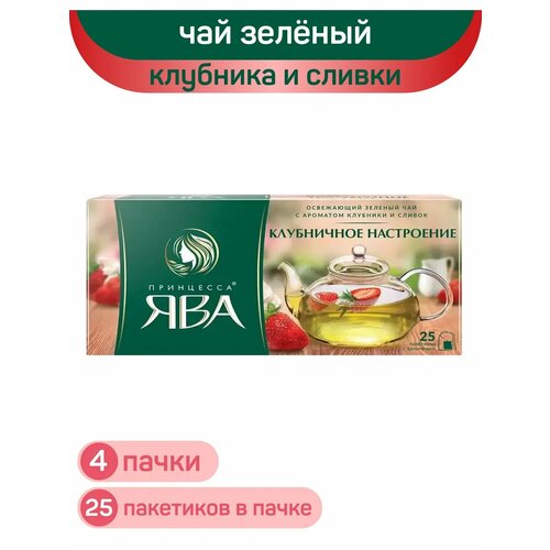 Чай зеленый Принцесса Ява, клубничное настроение, 4 упаковки по 25 пакетиков