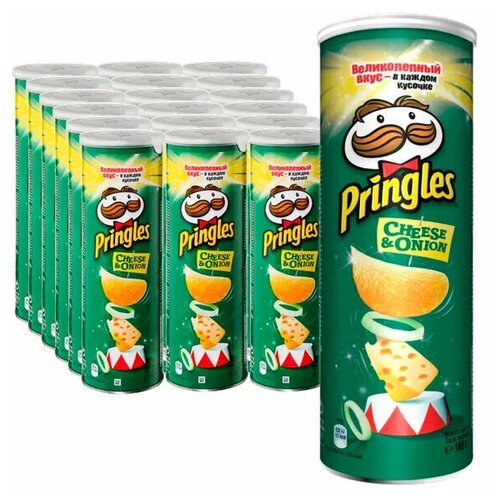Чипсы Принглс Pringles картофельные, со вкусом сыра и лука, 19 шт по 165 г