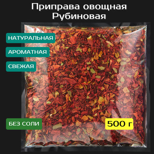 Овощная приправа Рубиновая 500 г. Смесь сушеных овощей, специй и пряностей. Хлопья паприки, семена горчицы, морковь, чеснок, лавровый лист.