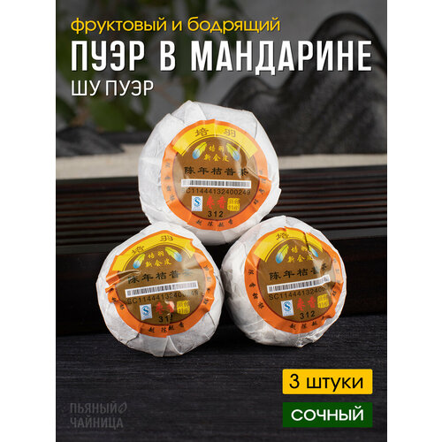Китайский чай Шу Пуэр в мандарине 3 штуки