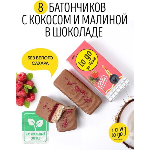Raw to go / Шоколадный батончик Кокос-Малина, 45г х 8 шт