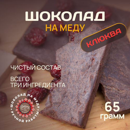 Шоколад на меду без сахара с Клюквой горький RawVeganCake, 65гр.