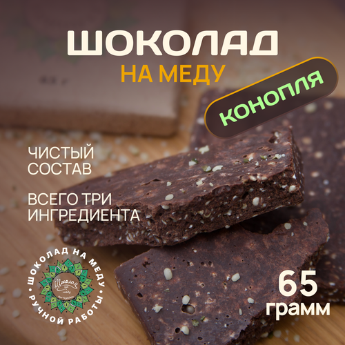 Шоколад на меду без сахара с Семенами Конопли горький RawVeganCake, 65 гр.