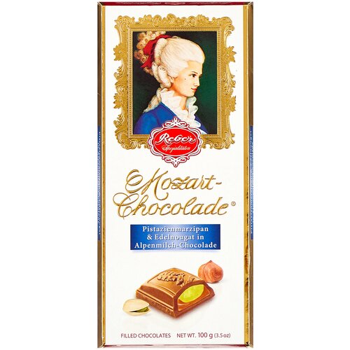 Шоколад Reber Mozart Chocolade Горький шоколад с фисташковым пралине, 100 г