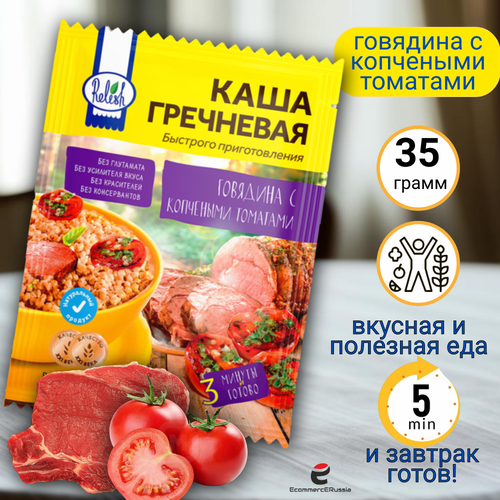 Каша быстрого приготовления Relish, гречневая "Говядина с копчёными томатами", 35гр. 1 шт.