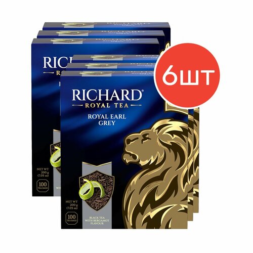 Чай в пакетиках черный Richard Royal Earl Grey 100 пакетиков 6 пачек