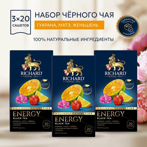 Чай черный Richard ENERGY набор моно 3 уп x20 шт, ассорти вкусов
