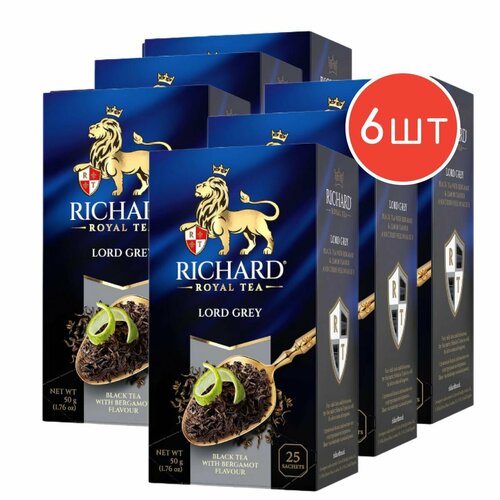 Чай черный Richard Lord Grey с ароматом бергамота и цитруса 25 пакетиков 6 упаковок
