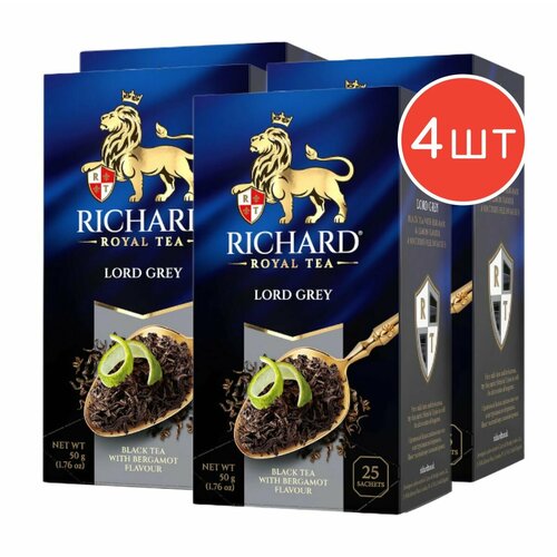 Чай черный Richard Lord Grey с ароматом бергамота и цитруса 25 пакетиков 4 упаковки