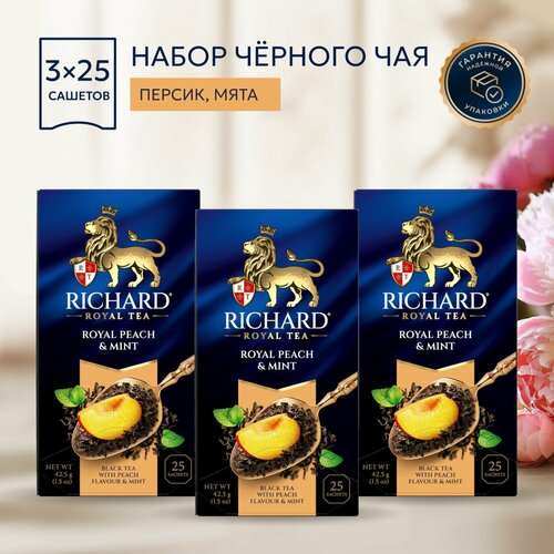 Чай черный ароматизированный Richard Royal Peach & Mint, набор ассорти 3 уп х 25 пак
