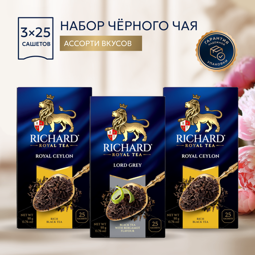 Чай Richard Royal Ceylon, Lord Grey, набор ассорти 3 уп х 25 пак