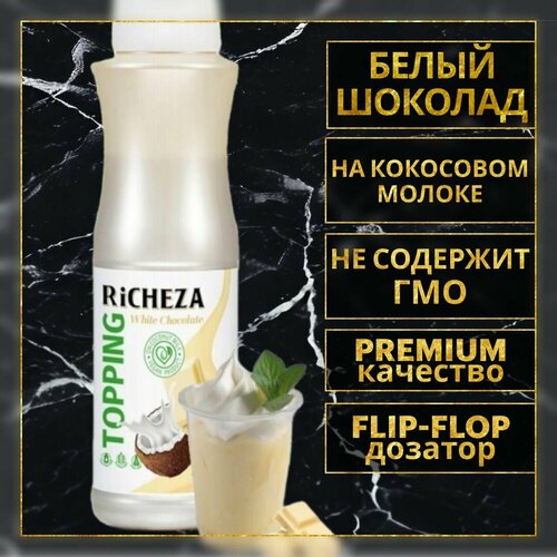 Топпинг десертный Richeza Белый Шоколад Веган для кофе, мороженого, выпечки, десертов и коктейлей, 1 кг.