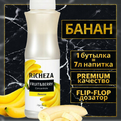Концентрат Основа для приготовления напитков Richeza Ричеза Банан, натуральный концентрат для чая, коктейля, смузи, лимонада, 1 кг.