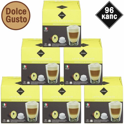 Кофе капсульный RIOBA Latte Macciato, 96 капс, 1152 гр, средняя обжарка, крепость 8, Dolce Gusto (Дольче Густо), Риоба Латте макиато